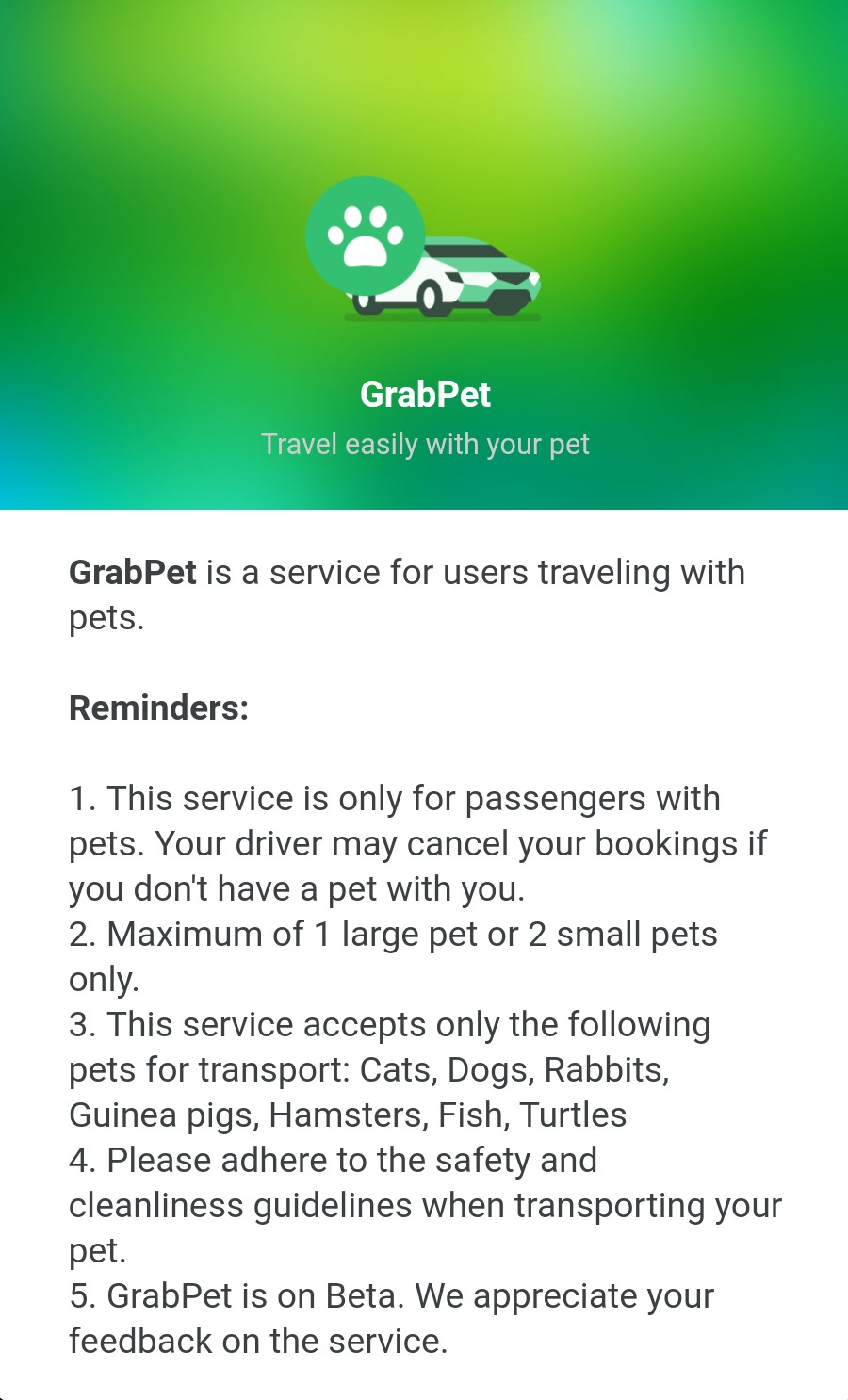 Grab now offers GrabPet and it’s now on Beta too!!!